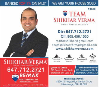 SHIKHAR VERMA has been selling real-estate for many years and prides himself on matching families with their perfect home. His happy clients are a testament to his commitment when helping them realize their housing dreams. Shikhar lives & works in Brampton and calls this community home. As a resale residential specialist of homes and condos, he gives each client the utmost care and attention.